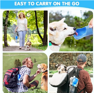 Diseño 2 en 1: Botella con dispensador incorporado para que tu perro beba directamente sin necesidad de recipientes adicionales.