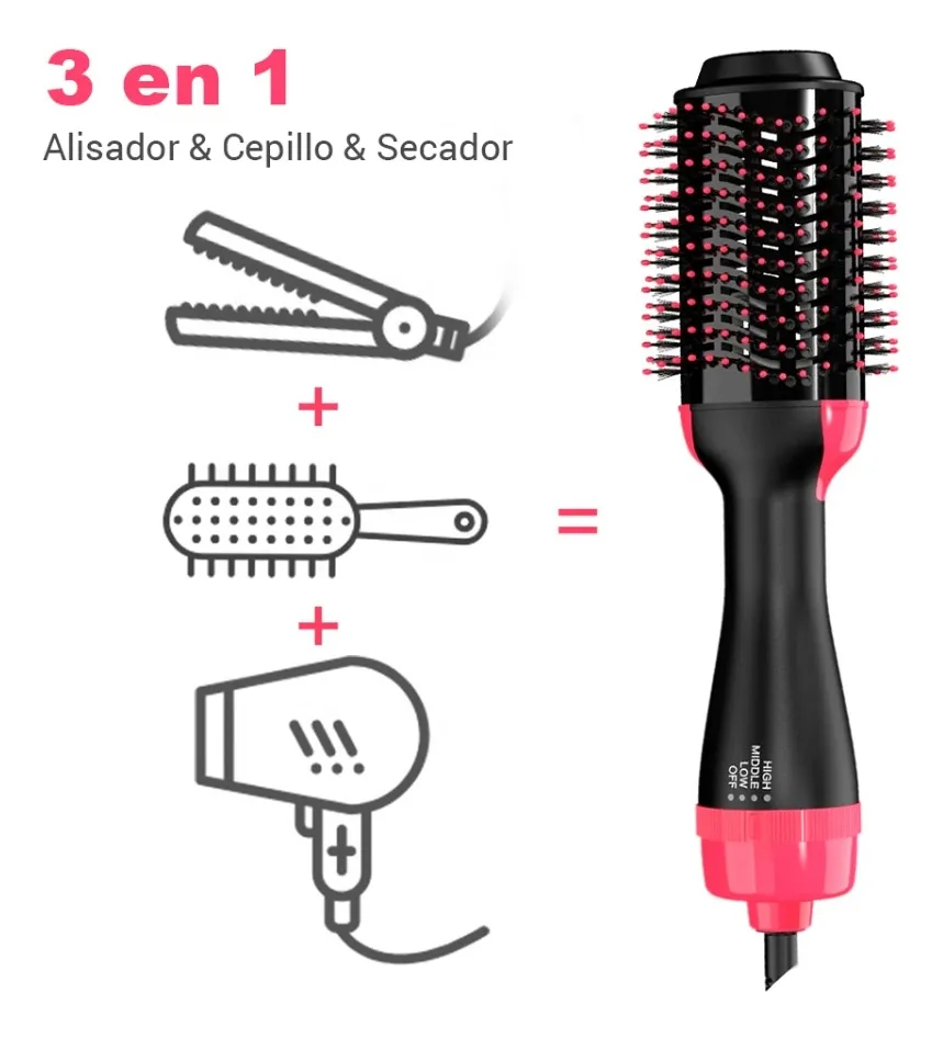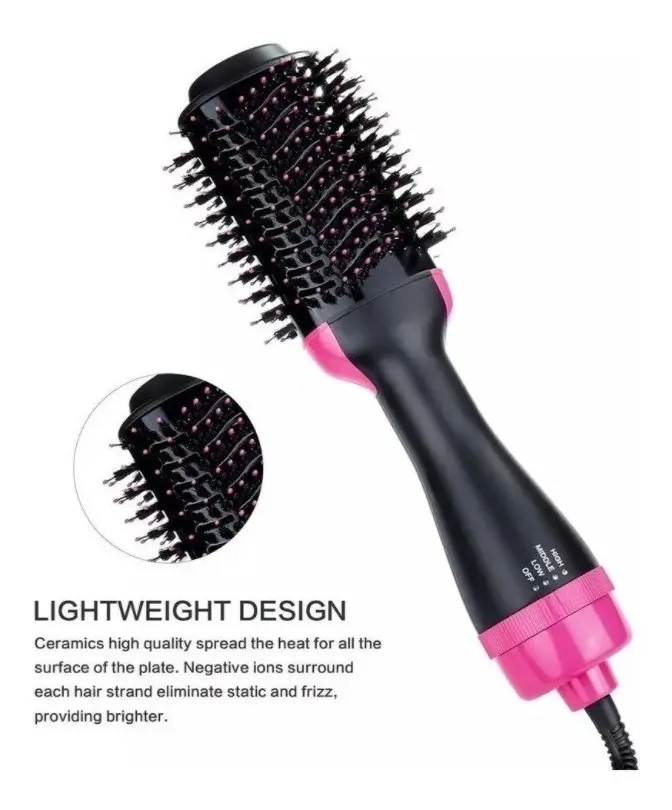Ayuda a reducir la humedad del cabello, acelerar el secado, reducir el daño, también reduce la estática del cabello, haciendo que el cabello sea suave y brillante. -->CARACTERISTICAS : Múltiples ajustes de calor, secado complejo y flexibilidad de diseño para todos los tipos de cabello. Cable de alimentación giratorio de 360 °, el modelado arbitrario de abgle sigue tus inclinaciones. Mango ergonómico para máxima comodidad y facilidad de uso durante el diseño. Ajuste de engranaje conveniente, rotación suave. Con puntos de masaje de nailon, relaja el cuero cabelludo. -->ESPECIFICACIONES : Color: rosa + negro Potencia: 1000W Frecuencia: 50- 60Hz Temperatura: 60 C - 120 C Tamaño del artículo: 340-75-55mm/13,4-3,0 - 2.2in Peso del artículo: 435g/1,0 LB Tamaño del paquete: 385-115-90mm Peso del paquete: 535g / 1.2lb --> PAQUETE QUE INCLUYE: 1 x Cepillo One Step 1 x Manual de instrucciones Garantía del vendedor: 60 días