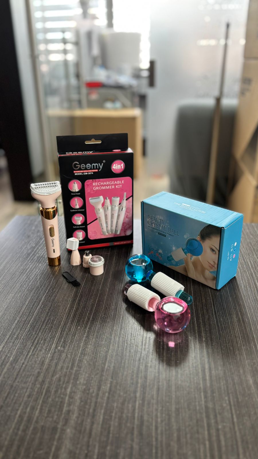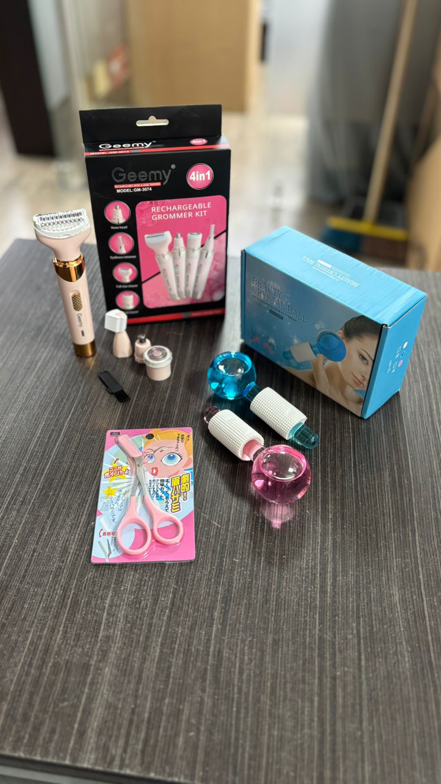 Incluye una depiladora recargable 4 en 1, ideal para eliminar vello de forma rápida, precisa y sin dolor en diferentes zonas del cuerpo. Gracias a sus cabezales intercambiables, puedes adaptarla según tu necesidad para un acabado limpio y profesional.